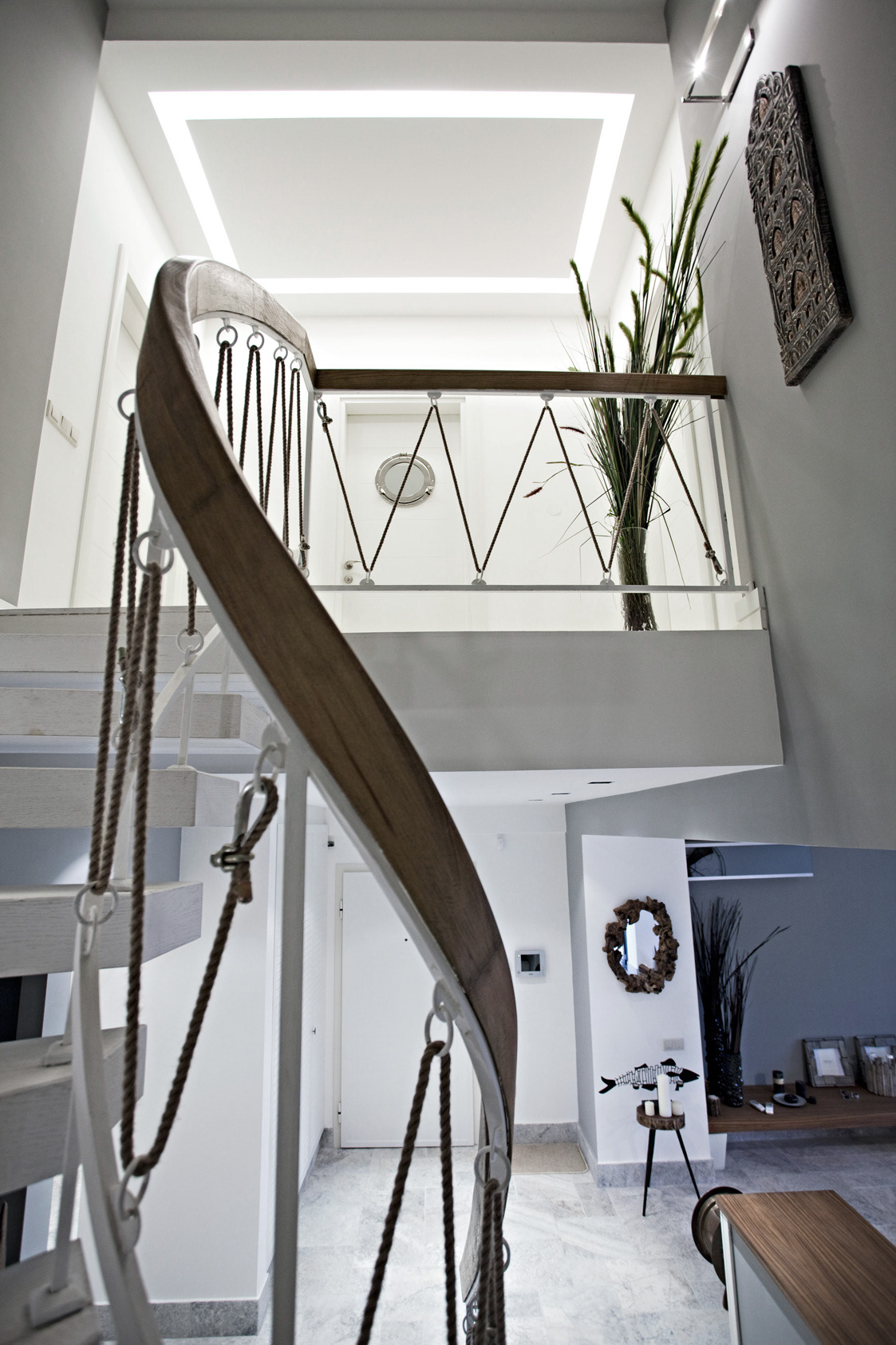 Teras dubleksi konumundaki daire, 2 çocuklu bir ailenin yaşam senaryosuna göre tasarlanmıştır. Denizcilik temasının mimari detay ve çözümlere yansıtıldığı tasarımda doğal ve geri dönüşümlü malzemeler kullanılmıştır. Mekanlar arasında görsel bütünlüğün sağlanabilmesi için yaşam alanlarında bölücü duvarlar kaldırılmıştır. Yapının mevcut merdiveni kaldırılarak yerine iç mekan konseptine uygun detayda yeni bir merdiven tasarlanmıştır. Mekanı genişletmek için ebeveyn yatak odasında mevcut giyinme odası ve banyo iptal edilerek niş içinde kabinet olarak yeniden çözülmüştür.