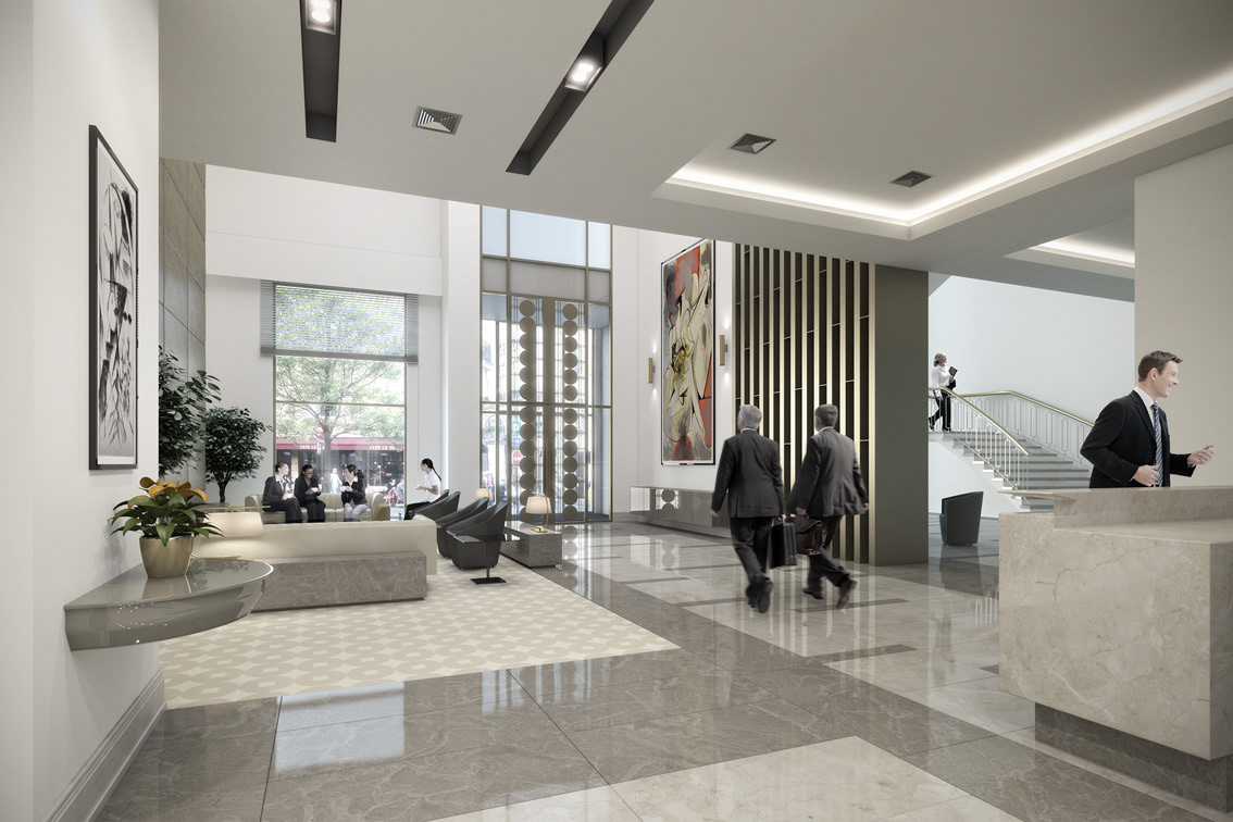 Interior concept for common areas of a neo-classic business center. Entrance & floor halls, corridors, service ares & the gym is designed according to general concept of the existing building.