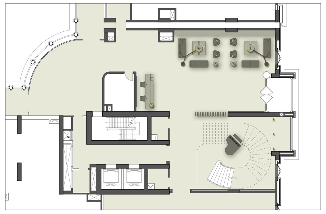 Neoklasik etkili yeni yapının iş merkezi bölümünün ortak kullanım alanları iç mekan tasarımıdır. Merkezin giriş ve kat holleri, koridorlar, servis alanları ile spor merkezi binanın karakterine uygun bir dilde yeniden tasarlanmıştır.